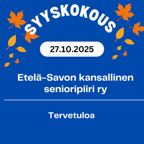 Etelä-Savon kansallisen senioripiirin syyskokous pidettiin 27.10. Pieksämäellä. Kokouksen aluksi Pieksämäen kaupunginjohtaja Emilia Savolainen esitteli kaupungin tulevaisuuden näkymiä. Liiton edustajana Risto Hämäläinen piti informatiivisen katsauksen liiton ja piirin toimintaan sekä piirin tulevaisuuteen. Myös varsinaisessa kokouksessa käytiin vilkasta keskustelua piirin tulevaisuudesta. Vuoden 2026 talousarvio ja toimintasuunnitelma hyväksyttiin yksimielisesti. Kokouksen puheenjohtajana toimi Timo Viinikainen Pieksämäeltä ja sihteerinä Aija Broms Savonlinnasta. Uudeksi puheenjohtajaksi valittiin Erkki Valjakka Mikkelistä.