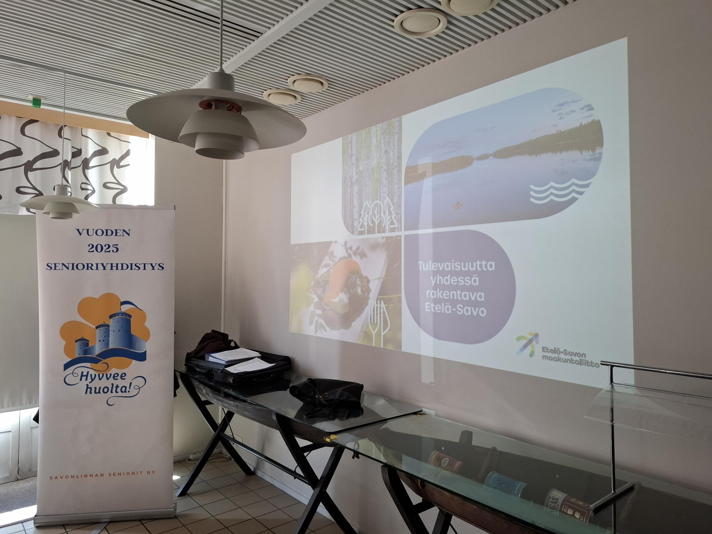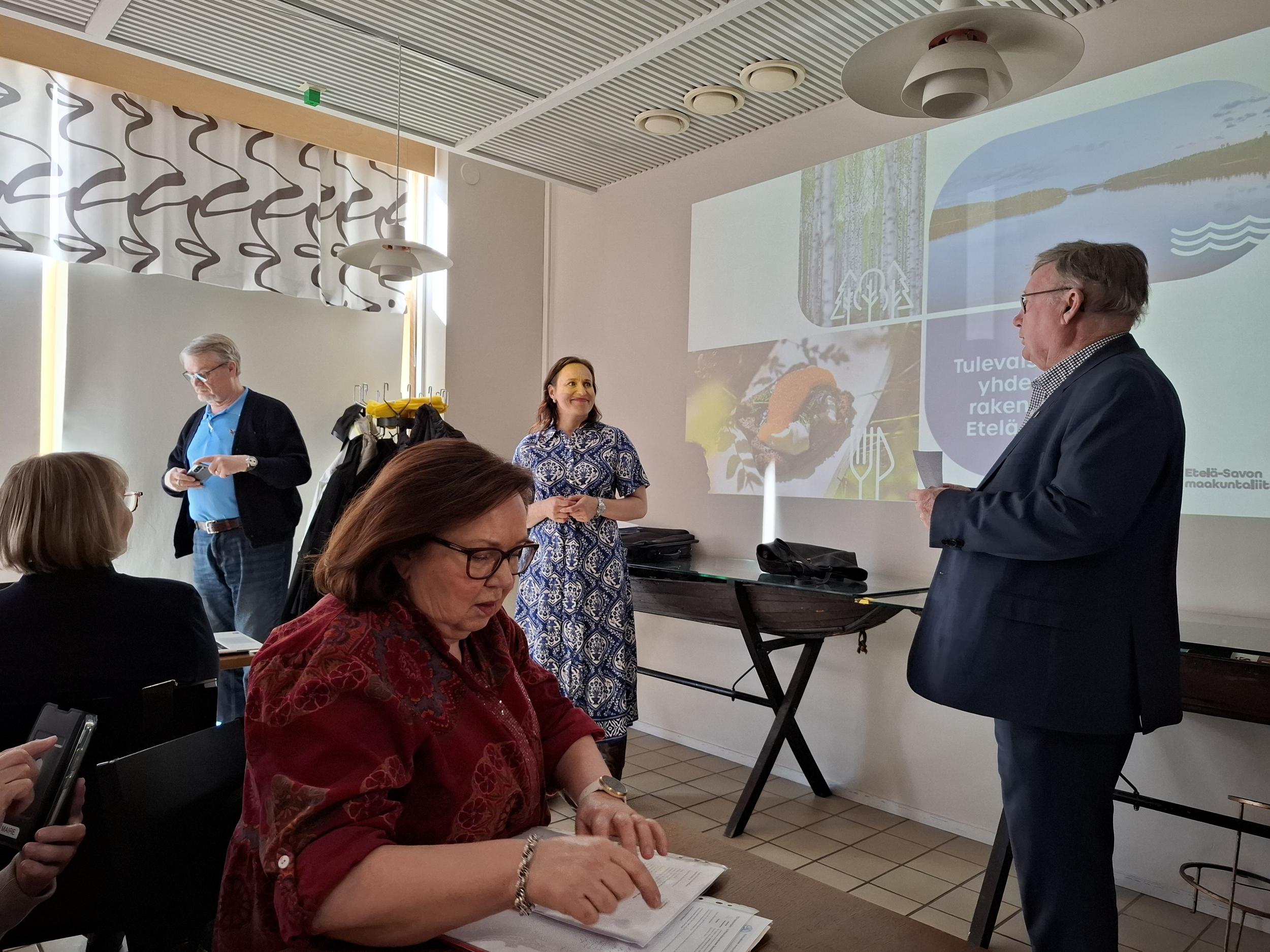 Ennen kokousta nautittiin bouffet-lounas klo 12.00 alkaen. Monipuolisen ja runsaan tarjoilun nautittuamme siirryimme kokouskabinettiin, jossa kuultiin Etelä-Savon maakuntaliiton maakuntajohtaja Heini Utusen kokousesitelmä.