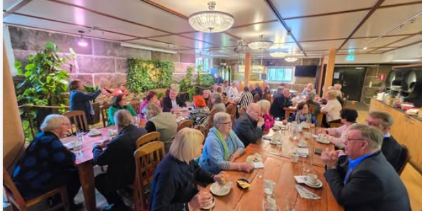 Kokousväki kokoontui Hilupilttuuseen maistuvalle buffet-lounaalle, jonka aikana museokokemuksia kerrattiin vielä pöydän ääressä.